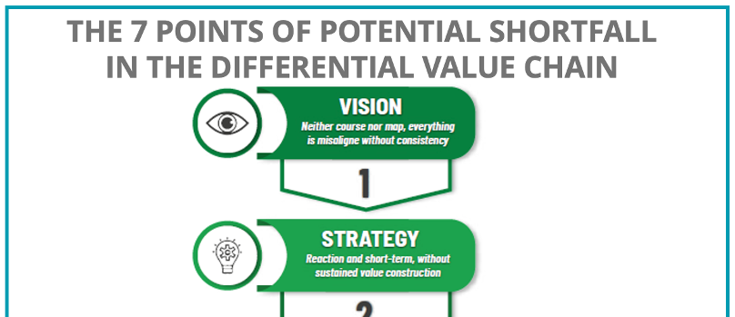 Introducción Este artículo forma parte del Programa Semestral sobre la Differential Value Chain , una iniciativa dedicada a profundizar en la metodología y el framework que permiten a las empresas tecnológicas construir y entregar un valor diferencial sostenible. Durante este mes de marzo, el programa está enfocado en desglosar los elementos fundamentales del framework. La semana pasada publicamos la guía del framework y la metodología , proporcionando una visión estructurada sobre su aplicación. En esta entrega, avanzamos en la identificación de los siete gaps más frecuentes en la Cadena de Valor Diferencial y sus consecuencias. En las próximas semanas, continuaremos desarrollando más aspectos clave dentro de esta metodología. La Cadena de Valor Diferencial es el eje sobre el cual una empresa construye, transporta y entrega un valor percibido como único por su mercado. Sin embargo, en la práctica, este proceso suele verse afectado por deficiencias que debilitan su eficacia. Nuestra experiencia aplicando el modelo Differential Value Chain a compañías de soluciones tecnológicas ha permitido identificar patrones recurrentes de brechas en esta construcción y entrega de valor. Estas brechas , o "gaps", no son incidentales; responden a fallos estructurales o de ejecución que impactan directamente en la competitividad y rentabilidad. En nuestra observación, se presentan siete gaps específicos organizados en cinco zonas críticas dentro de la Cadena de Valor Diferencial. Estas áreas representan los puntos donde con mayor frecuencia las empresas experimentan deficiencias, ya sea por falta de recursos, de alineación estratégica o de entendimiento de su importancia. Una cadena es tan fuerte como su eslabón más débil. Identificar y comprender estos gaps es el primer paso hacia la optimización del modelo de diferenciación y su impacto en el negocio. El Diagrama que representa dichos gaps y zonas críticas es el que puedes encontrar debajo al final de este artículo, y que a continuación pasamos a explicar en detalle. Las Cinco Zonas y sus gaps Zona 1: Falta de Rumbo y Alineación Estratégica → Gap 1 (Vision) Las empresas que carecen de una visión clara sufren una desalineación constante. La errónea creencia de que la flexibilidad extrema es incompatible con una visión definida lleva a muchas compañías a operar sin una dirección estratégica, adaptándose de manera reactiva sin un propósito definido. La falta de visión impacta la capacidad de sostener un crecimiento coherente y de construir una propuesta de valor sólida. Consecuencia : "Ni rumbo ni mapa, se desalinea todo sin consistencia." Zona 2: Reacción cortoplacista y ausencia de construcción de Valor Sostenible → Gap 2 (Strategy) Las estrategias inconsistentes o de corto plazo generan una incapacidad de construir ventajas competitivas sostenibles. En entornos tecnológicos altamente dinámicos, es común que las empresas prioricen la inmediatez sobre la planificación a medio y largo plazo, debilitando su estructura competitiva. Consecuencia : "Reacción y corto plazo, sin construcción de valor sostenido." Zona 3: Factores internos que afectan la ejecución → Gaps 3 y 4 (Culture & Resources) La cultura corporativa y la disponibilidad de recursos son determinantes en la ejecución de la estrategia de diferenciación. Un entorno organizativo con mediocridad o alta rotación de talento impide la consolidación de una ventaja competitiva. A su vez, la insuficiencia de recursos hace que la apuesta por la diferenciación sea frágil y poco sostenible en el tiempo. Consecuencias : • "Acomodamiento, mediocridad, rotación de talento." (Gap 3 - Culture) • "Hay apuesta real si hay recursos." (Gap 4 - Resources) Existe un principio ampliamente aceptado en alta dirección: algo es verdaderamente estratégico para una empresa no porque un directivo lo mencione en un PowerPoint o lo declare en reuniones, sino porque se refleja en el presupuesto anual con una asignación de recursos. Si una organización dice que algo es importante pero no le destina una partida presupuestaria concreta, en la práctica, no es realmente prioritario. Este gap refleja la desconexión entre el discurso y la realidad operativa, donde muchas empresas declaran que ciertas iniciativas son clave, pero no destinan los medios necesarios para ejecutarlas con éxito. Zona 4: Dificultades para el crecimiento y erosión del margen → Gap 5 (Differentiation) Las empresas que no logran establecer una diferenciación clara sufren presiones de precio y dificultades para expandirse a nuevos negocios. La diferenciación no es solo un elemento de marketing, sino un pilar fundamental para sostener la rentabilidad y evitar la erosión de márgenes en mercados cada vez más homogéneos. Consecuencia : "Cuesta crecer en negocios nuevos, y erosión de los márgenes." Zona 5: Impacto en el Go-to-Market y la Promesa de Valor → Gaps 6 y 7 (Go-to-Market & Story o Relato Corporativo) El fracaso en estructurar un Go-to-Market eficiente y en construir un relato convincente es un factor crítico de pérdida de competitividad. Muchas empresas no dotan a su historia corporativa de una coherencia que refuerce su diferenciación, debilitando su impacto en el mercado. Consecuencias : • "Cuesta crecer en negocios nuevos, y erosión de los márgenes." (Gap 6 - Go-to-Market) • "El relato no genera credibilidad ni diferenciación." (Gap 7 - Story) Consecuencias globales de estas brechas Cada uno de estos gaps contribuye a la debilitación de la competitividad y al deterioro de la rentabilidad empresarial . Cuando una empresa carece de una visión clara, adopta estrategias reactivas, no consolida su cultura organizativa, opera con recursos insuficientes o no estructura una diferenciación efectiva, se vuelve vulnerable a la indiferenciación y la guerra de precios. A nivel de negocio, la acumulación de estas brechas genera: Desorientación estratégica y fa
